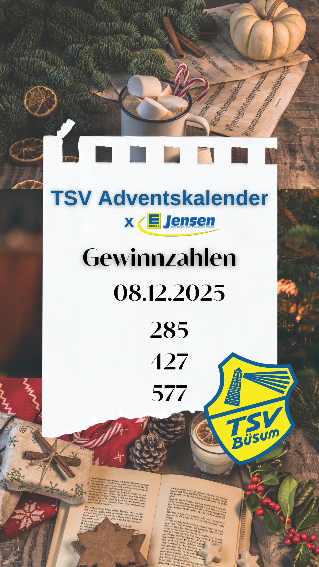 zurück 0 TSV Adventskalender Gewinnzahlen 08.12.2025 by Kirsten 08-12-2025 Your vote is: 0.00 von 0 Stimmen